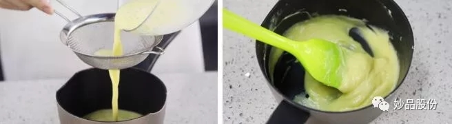 4、做好的卡絲達醬冷卻后即可使用(如果要加速冷卻,可以將奶鍋坐在冷水里,并不斷攪拌)。