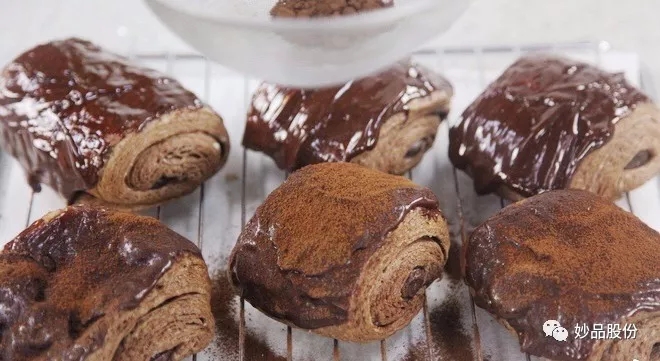 配料:高筋粉850克,低筋粉150克,細砂糖150克,干酵母10克   妙緣巧克力烘焙直用醬(60%) 25克