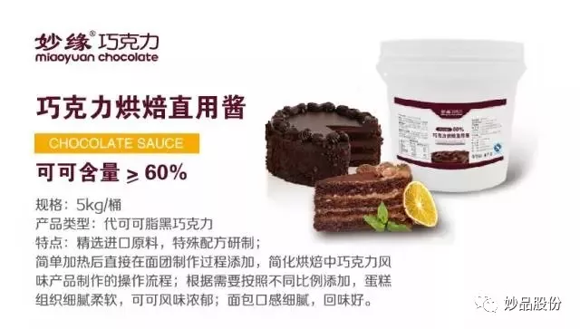 1、蛋糕面團制作時,加入妙緣巧克力烘焙直用醬(可可含量≥60%),可可粉容易發(fā)干。