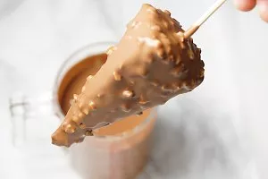 冷凍好的粽子在巧克力醬里迅速蘸取一下取出。