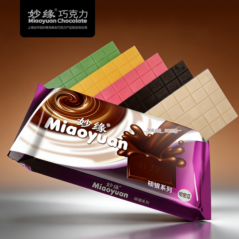 妙緣代可可脂巧克力磚,又稱彩色巧克力大板,無需調溫,切碎融化即可使用,操作性優良,凝固后裹衣均勻,節省原料,口感酥脆。妙緣代可可脂巧克力,冷飲可做雪糕涂層、冰淇淋涂層、淋面、巧克力火鍋、水果沙拉巧克力淋面醬等,成品美觀,口感豐富;烘焙可做餅干、蛋糕、面包巧克力夾心、涂層、淋面等,成品口感豐富,色澤誘人,深受消費者喜愛。用戶可根據自己的喜好選擇不同的口味,可定制。