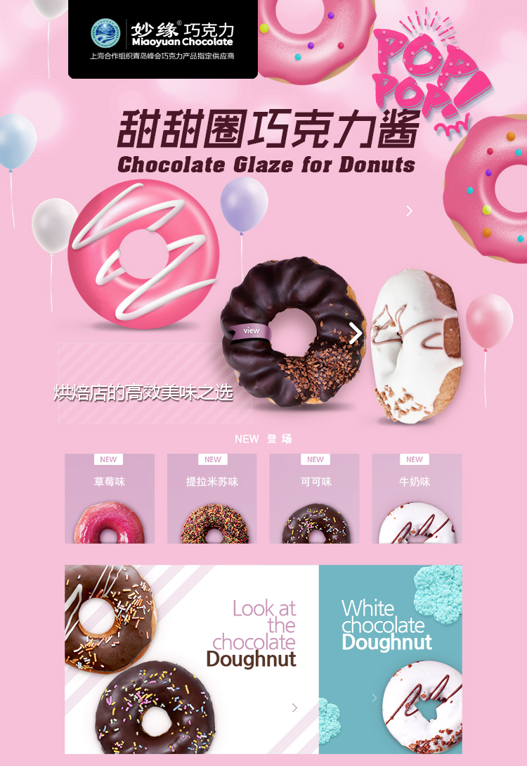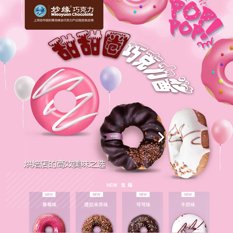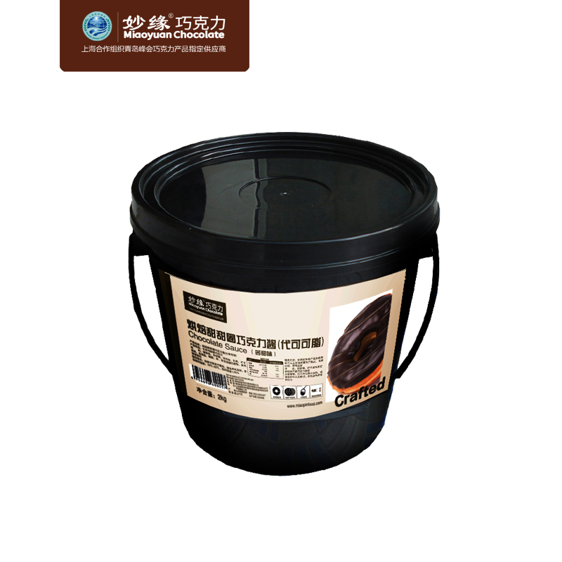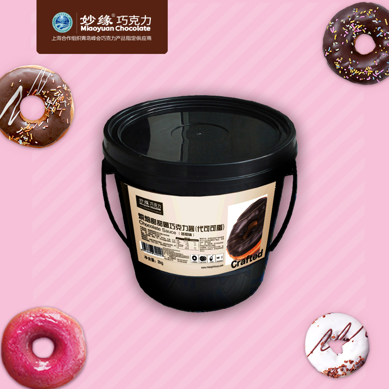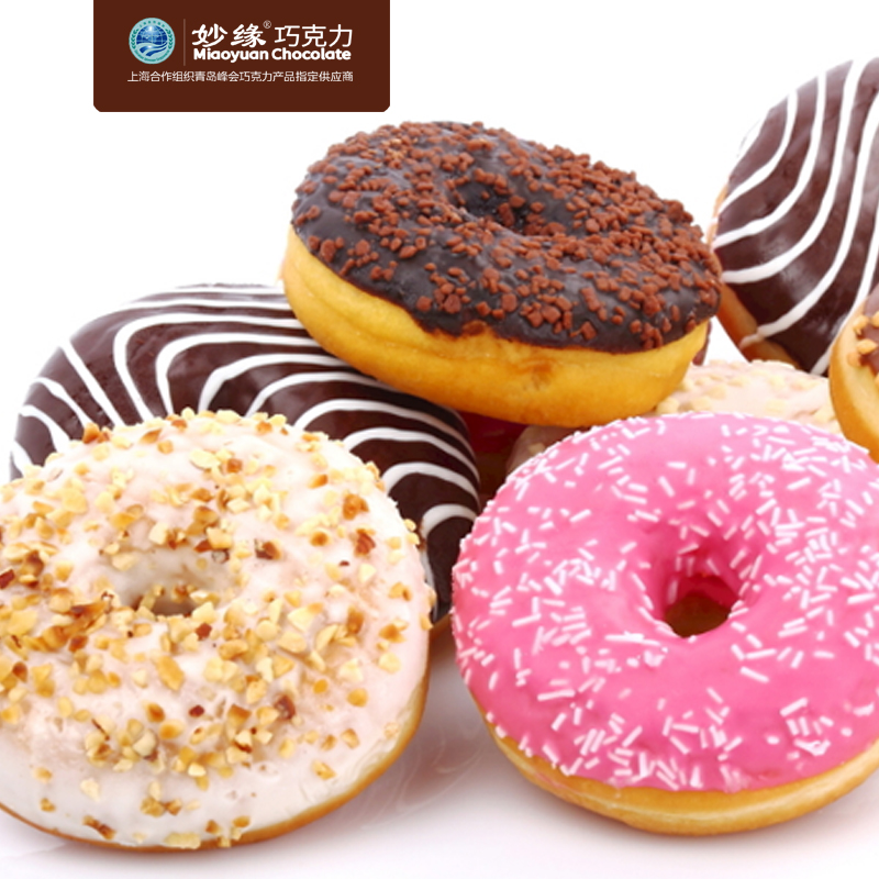 妙緣烘焙甜甜圈巧克力醬,粘稠度適中、收干速度快、對溫度適應性強,易操作;化口性好,光澤度佳,可可風味濃郁,巧克力香味較自然,組織軟化細膩。產品口味種類多樣。主要有苦甜味、白牛奶味、草莓味、提拉米蘇味、芒果味、抹茶味等,可制作豐富多彩的巧克力甜甜圈產品系列。
