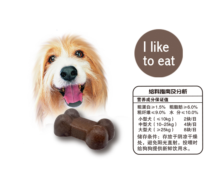 產品使用:巧克力風味狗狗零食,目前已暢銷美國、澳大利亞等國,可定制