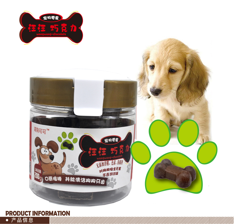 狗狗零食巧克力,是一款狗狗可以吃的巧克力,骨頭狀,不含可可成分,堪稱健康寵物零食。狗狗零食巧克力目前已暢銷美國、澳大利亞等國。“人寵同食”,尊享巧克力口味,寵物的王室生活,愛它就給它美味的歡樂時光。