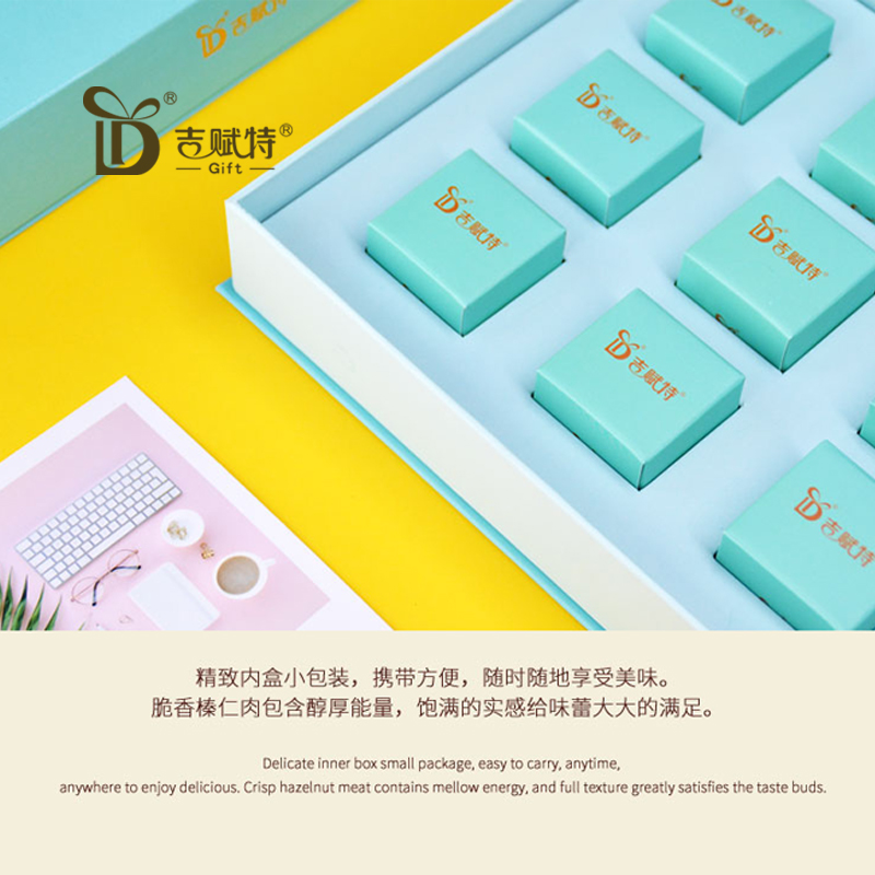 吉賦特愛的衣裳巧克力禮盒,榛仁夾心牛奶巧克力,高檔禮盒包裝,讓你的“榛”心穿上“愛”的衣裳,包裝簡約大氣,送禮有面子,盒內小包裝,攜帶方便,隨時隨地享受美味。