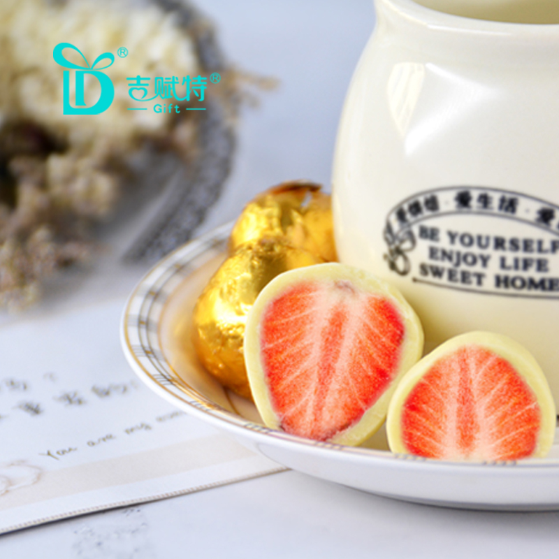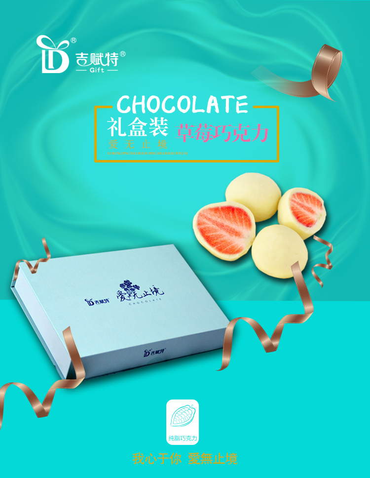 吉賦特愛無止境巧克力禮盒,草莓夾心白巧克力,原創設計禮盒,清新淡雅包裝添加寶石藍絲帶手繩,禮盒從內而外唯美浪漫,口感絲滑細膩,酸甜酥脆,清爽不膩口。送朋友,送親人、送同事,送禮倍有面。