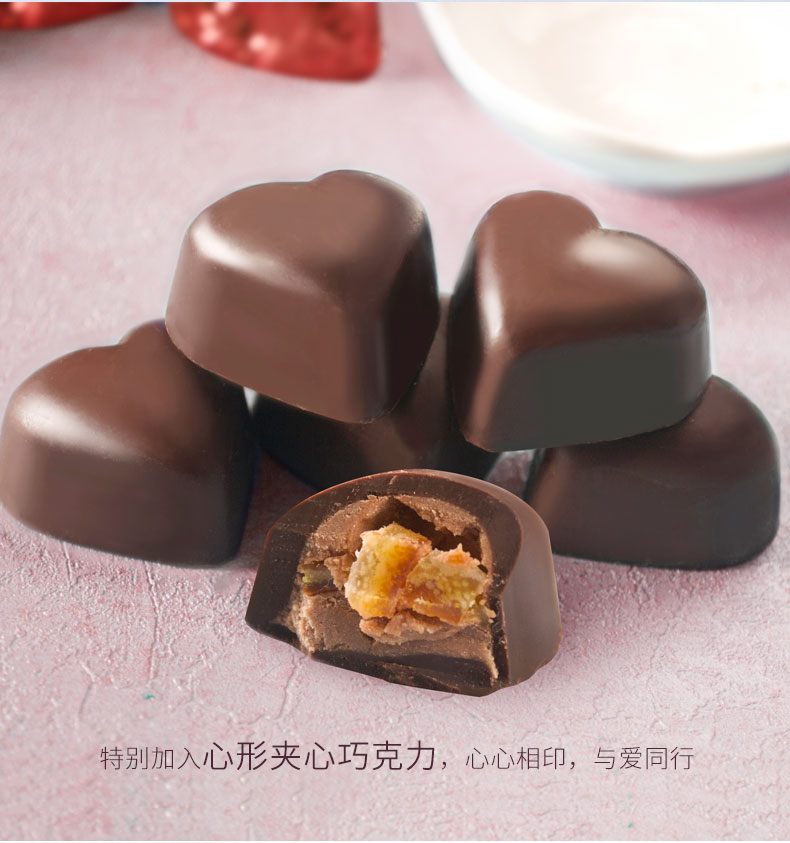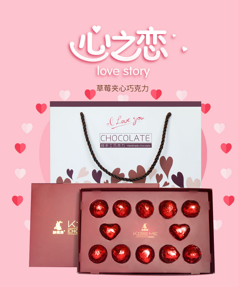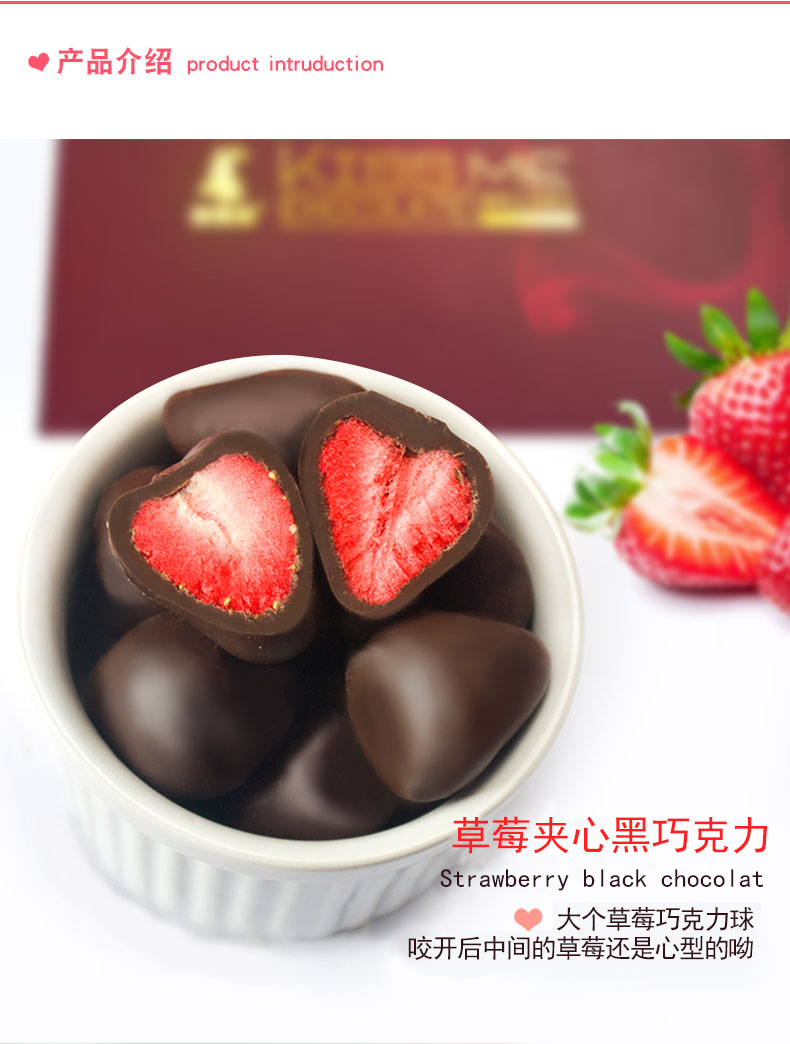 產品使用:草莓夾心純脂手工巧克力,絲滑細膩,甜蜜爽口,愛心永不變