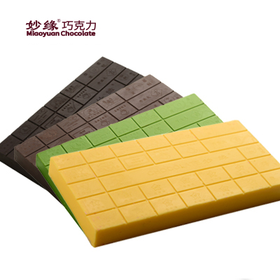 妙緣彩色巧克力磚有巧克力原味、牛奶味、草莓味、抹茶味、檸檬味、哈密瓜味等多種口味,顏色口味也可根據要求進行定制。